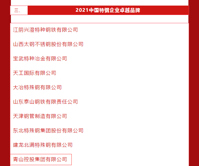 5月10日,第5个中国品牌日,中国冶金报社发布了2021年度中国钢铁品牌榜。J9国际站登录控股集团有限公司荣膺“2021中国卓越钢铁企业品牌” “2021中国特钢企业卓越品牌”。
