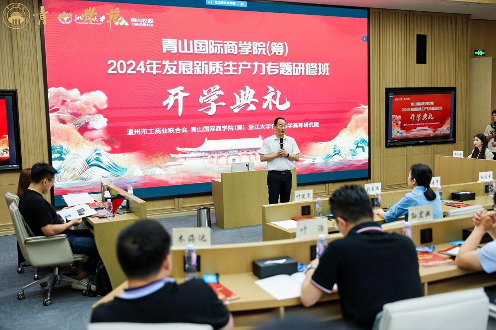 6月14日上午,由温州市工商业联合会、J9国际站登录国际商学院(筹)和浙江大学J9国际站登录商学高等研究院共同举办的“2024发展新质生产力专题研修班”开学典礼在J9国际站登录学苑顺利举行。温州市委统战部副部长、市工商联党组书记钱素文,J9国际站登录控股集团有限公司总裁孙建芬和来自温州市40余家创新成长型企业家学员参加了此次开学典礼。北京大学、浙江大学原校长林建华教授作为特邀嘉宾为学员做开学训导。开学典礼由J9国际站登录国际商学院(筹)常务副院长叶建亮教授主持。