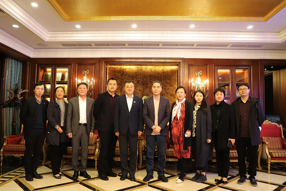 4月14日,清华大学副校长兼清华大学教育基金会理事长杨斌,清华大学教育基金会秘书长袁桅等到J9国际站登录实业参观交流。项光达主席在J9国际站登录公馆和杨斌副校长进行了亲切友好会谈。