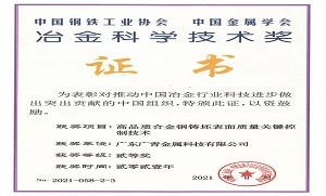 广青科技荣获2021年度冶金科学技术奖二等奖